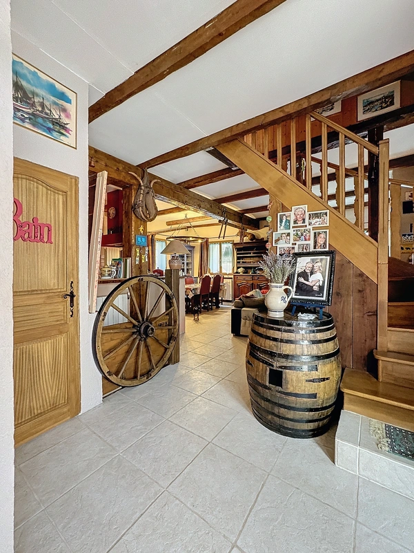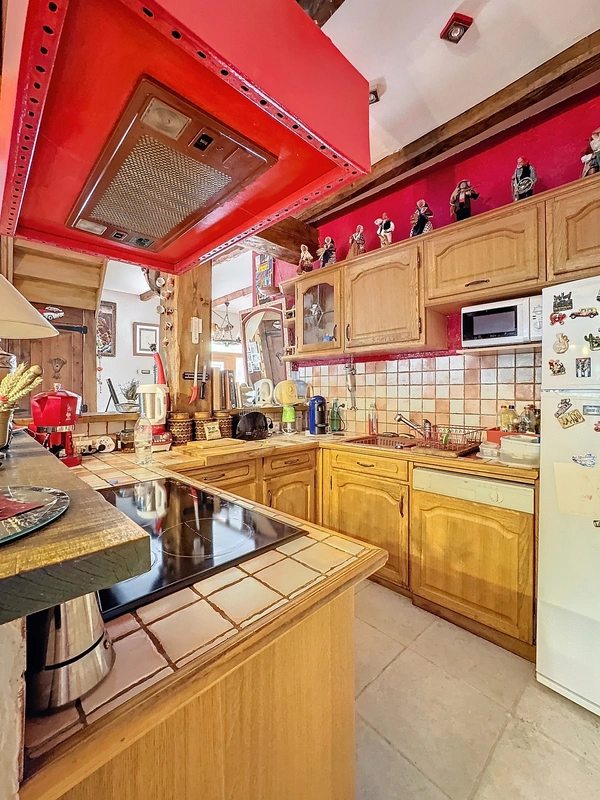 Profitez d'une cuisine moderne et entièrement équipée, ouverte sur une grande pièce à vivre avec cheminée. Un espace parfait pour recevoir vos proches et partager des moments conviviaux.